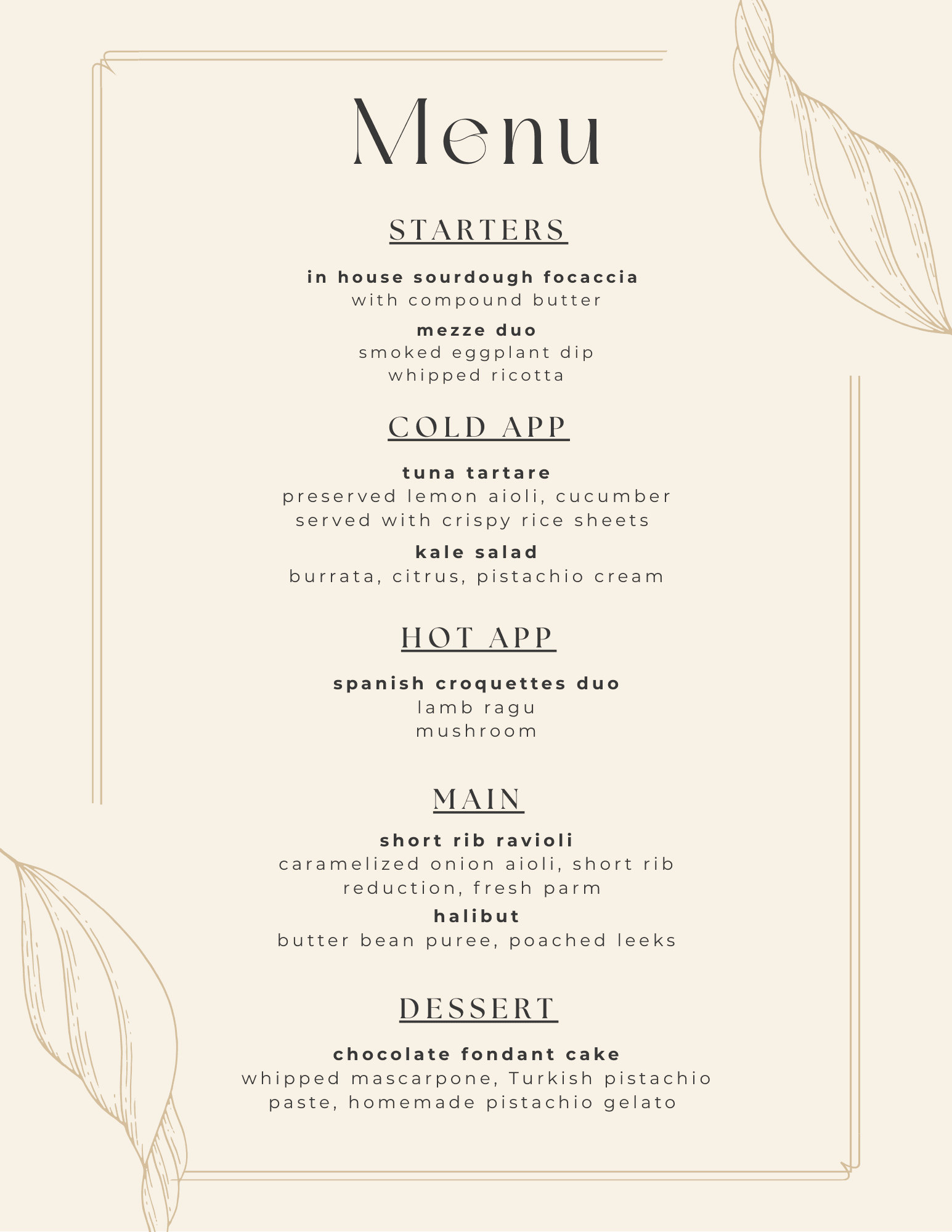 Browse a few of my previous menus.